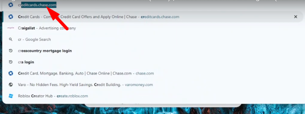 Step 2: Access Credit Card Section of Chase Website In the browser’s address bar, type “creditcards.chase.com,” which is the URL for the credit card section of Chase’s website. Press Enter to navigate to the site.