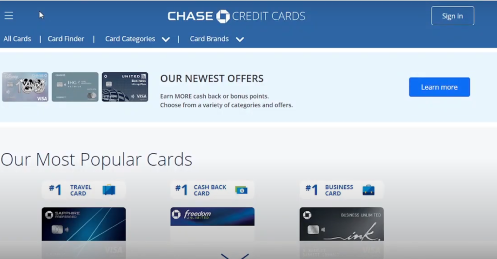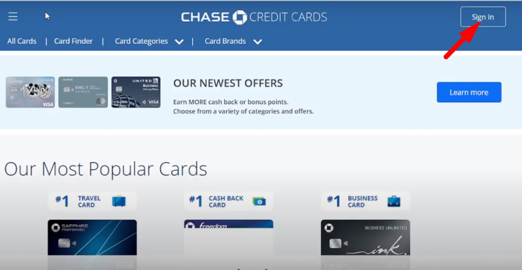 Step 3: Click on Sign In Once on the Chase credit card webpage, locate the “Sign In” button positioned at the top right corner. Click on it to proceed to the login page.