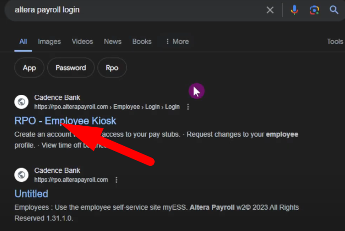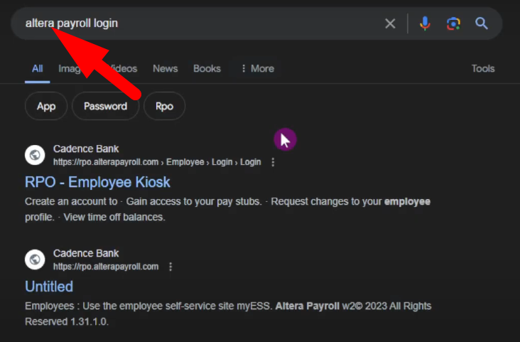 Step 2: Search for Altera Payroll Login