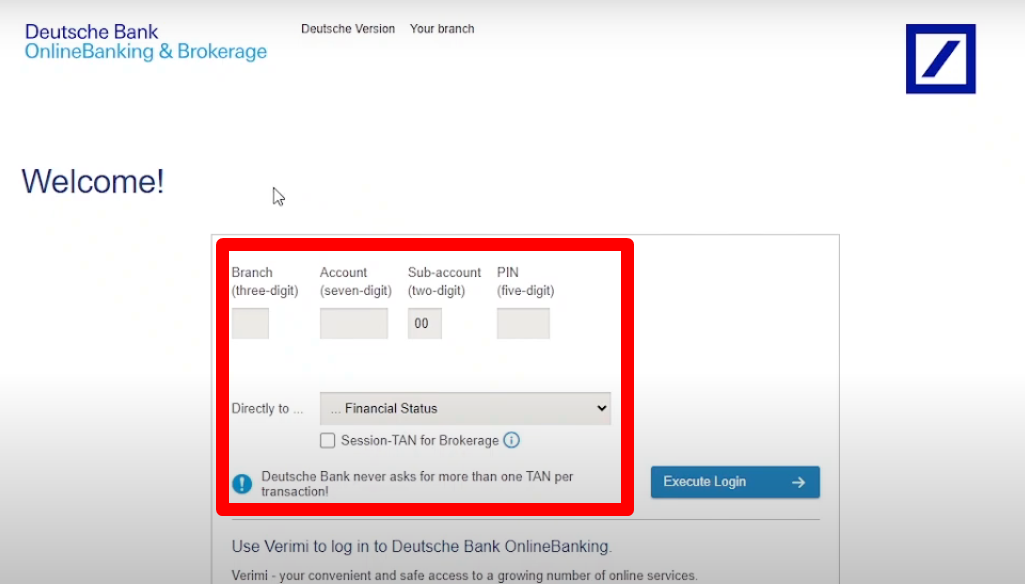 Step 4: Enter Your Login Information After selecting your country, you’ll be prompted to enter your specific login credentials. For example, if you’re logging in from Germany, you may need to provide your branch number, account number, sub-account, and PIN. Alternatively, if you have a “Mein Deutsche Bank” (Mein DB) account, you’ll need to enter your login ID and password.