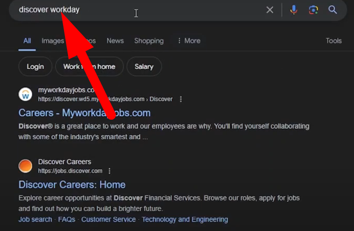 In the search bar, type “Discover Workday” and press enter. Search for the official My Workday Jobs login URL.
