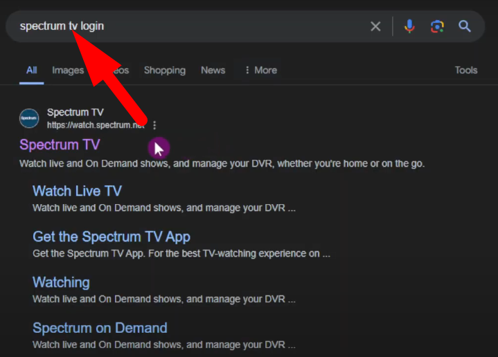 In the search results, search for the official Spectrum TV login link. To access the login page, click on it.