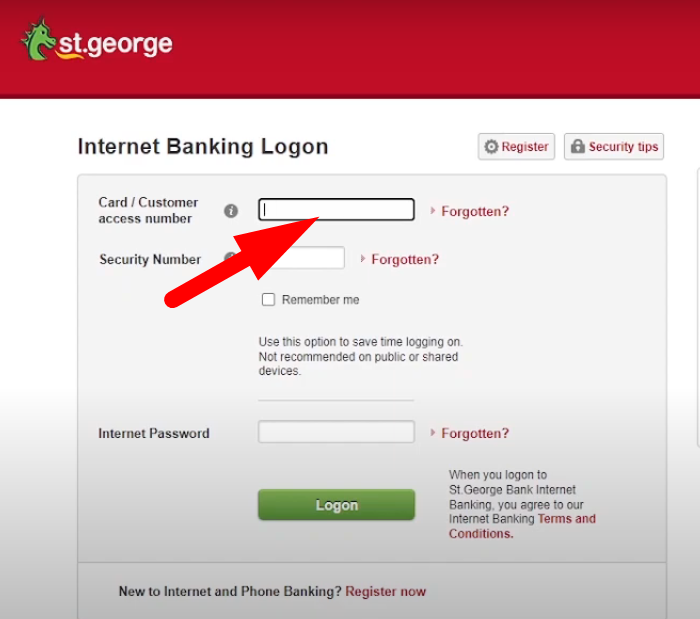 Step 4: Log in to Your Internet Banking Account If you already have an internet banking account, enter your card number or customer access number in the first section. Then, enter your security number and password in the subsequent sections.