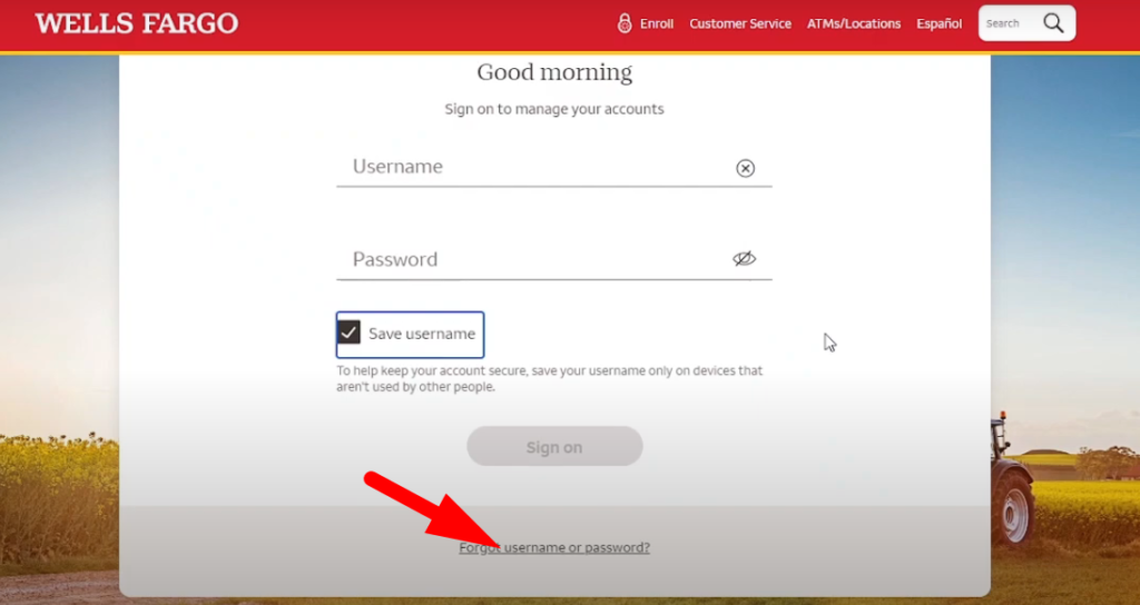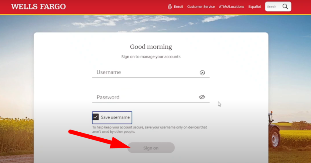Step 2: Entering Your Credentials In the login form, enter your username and password associated with your Wells Fargo online banking account. If you don’t see the login form, you can alternatively click on the “Sign On” button located at the top right corner of the page. You also have the option to check the box labeled “Save Username” for convenience, eliminating the need to enter your username each time you visit the website.