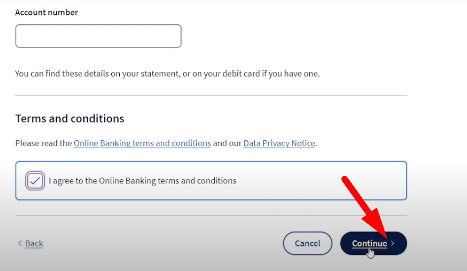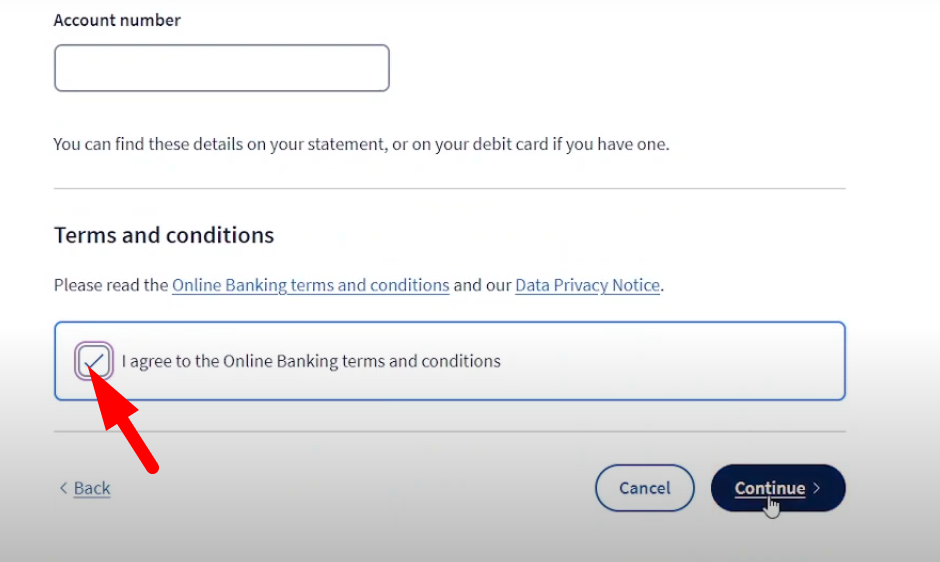 Read through the online banking terms and conditions carefully. If you agree to them, check the box indicating your acceptance.