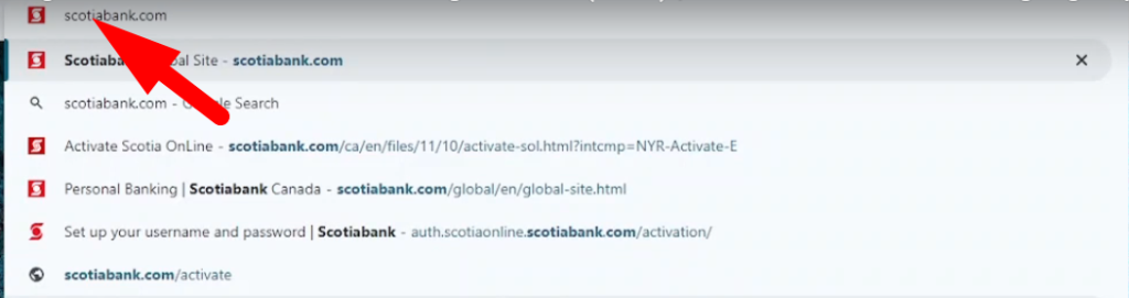 Open your web browser and type “scotiabank.com” into the URL bar. Press Enter to navigate to the Scotiabank website.